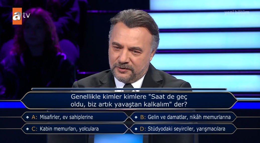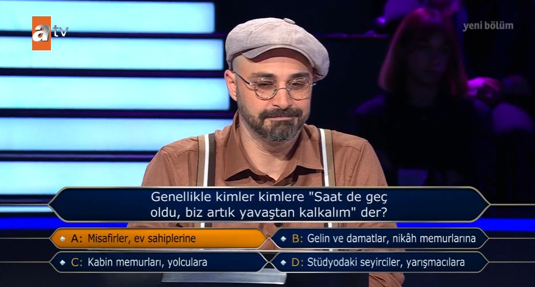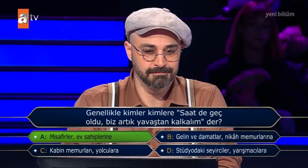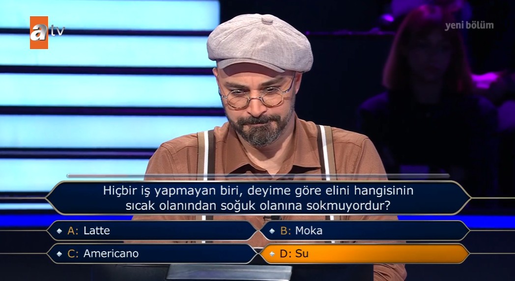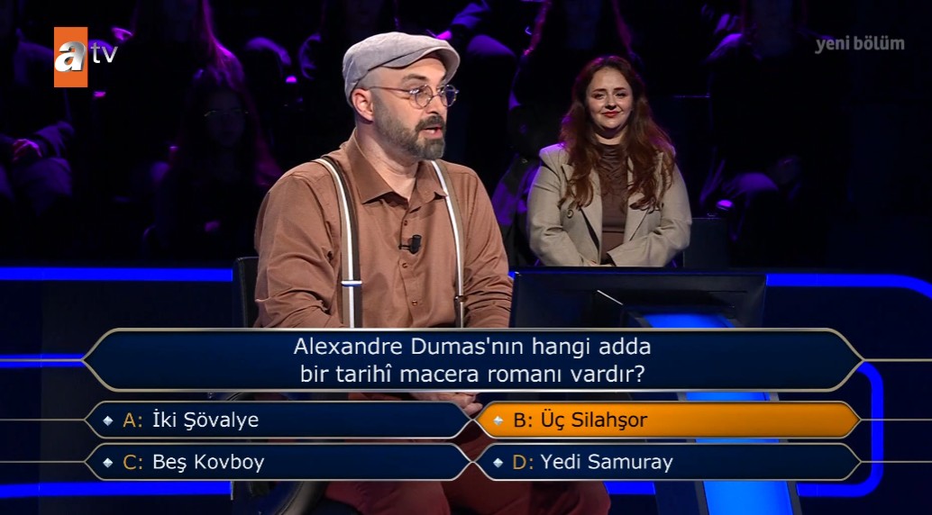 Genç yarışmacı ilk olarak soruyu seyirciye sorarak doğru yanıtı vermeye çalıştı fakat verilen tahminlerin yakın olması nedeniyle bu kez yarı yarıya joker hakkını kullanma kararı aldı.