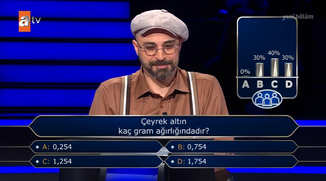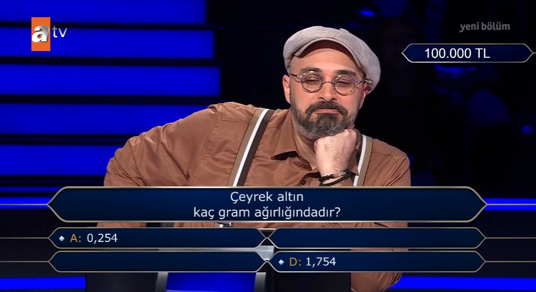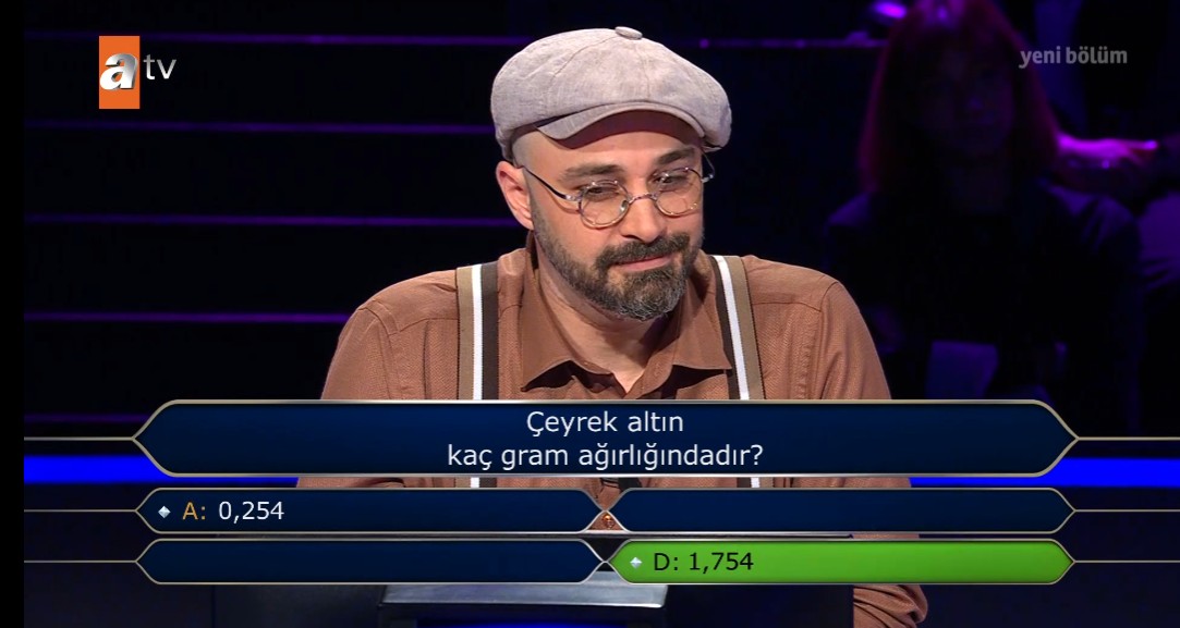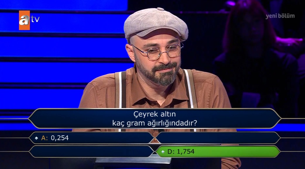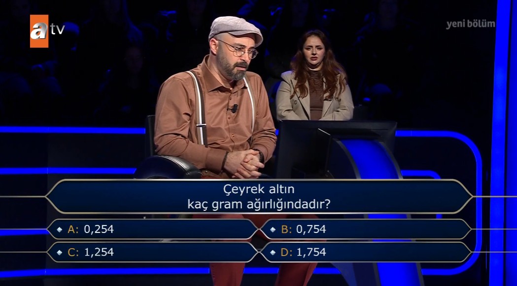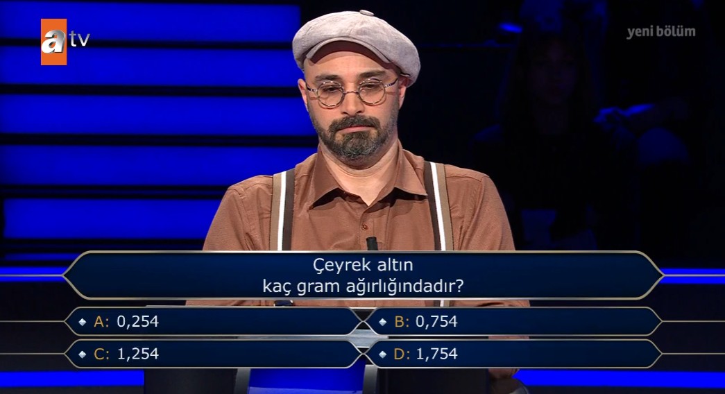 Kim Milyoner Olmak İster'in 8. sorusunda "Çeyrek altın kaç gram ağırlığındadır?" yer verildi
