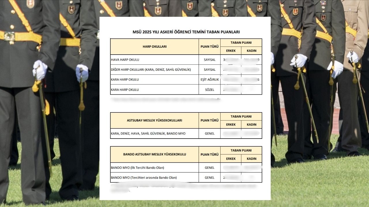 MSÜ 2025 YILI ASKERİ ÖĞRENCİ TEMİNİ TABAN PUANLARI
