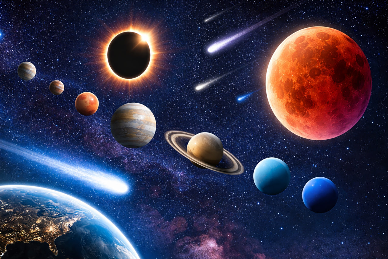 2026 yılı, gökyüzüne bakmayı alışkanlık haline getirenler için sıra dışı olaylarla dolu bir takvim sunuyor. Gezegen hizalanmaları, kanlı Ay, büyük güneş tutulması ve dikkat çeken meteor yağmurları yıl boyunca izlenebilecek. Uzay meraklılarını heyecanlı bir yıl bekliyor.