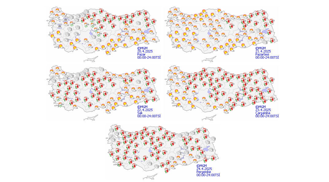 Meteoroloji Genel Müdürlüğü'nün son değerlendirmelerine göre yurt genelinde parçalı ve çok bulutlu bir hava hakim olacak. Özellikle İç Anadolu'nun kuzeydoğusu, Batı Karadeniz'in iç kesimleri, Orta ve Doğu Karadeniz, Doğu Anadolu'nun kuzeydoğusu ile bazı illerde yerel sağanak ve gök gürültülü sağanak yağışlar görülecek.