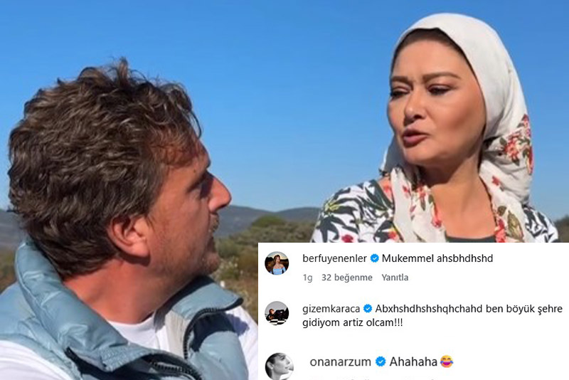 Yeşilçay'ın bu doğal ve samimi hallerine meslektaşları da kayıtsız kalamadı. Arzum Onan videoya kahkahalarla karşılık verirken, Gizem Karaca ise Yeşilçay'ın şivesine atıfta bulunarak; "Ben böyük şehre gidiyom artiz olcam!" yorumuyla neşeli dakikalara ortak oldu.