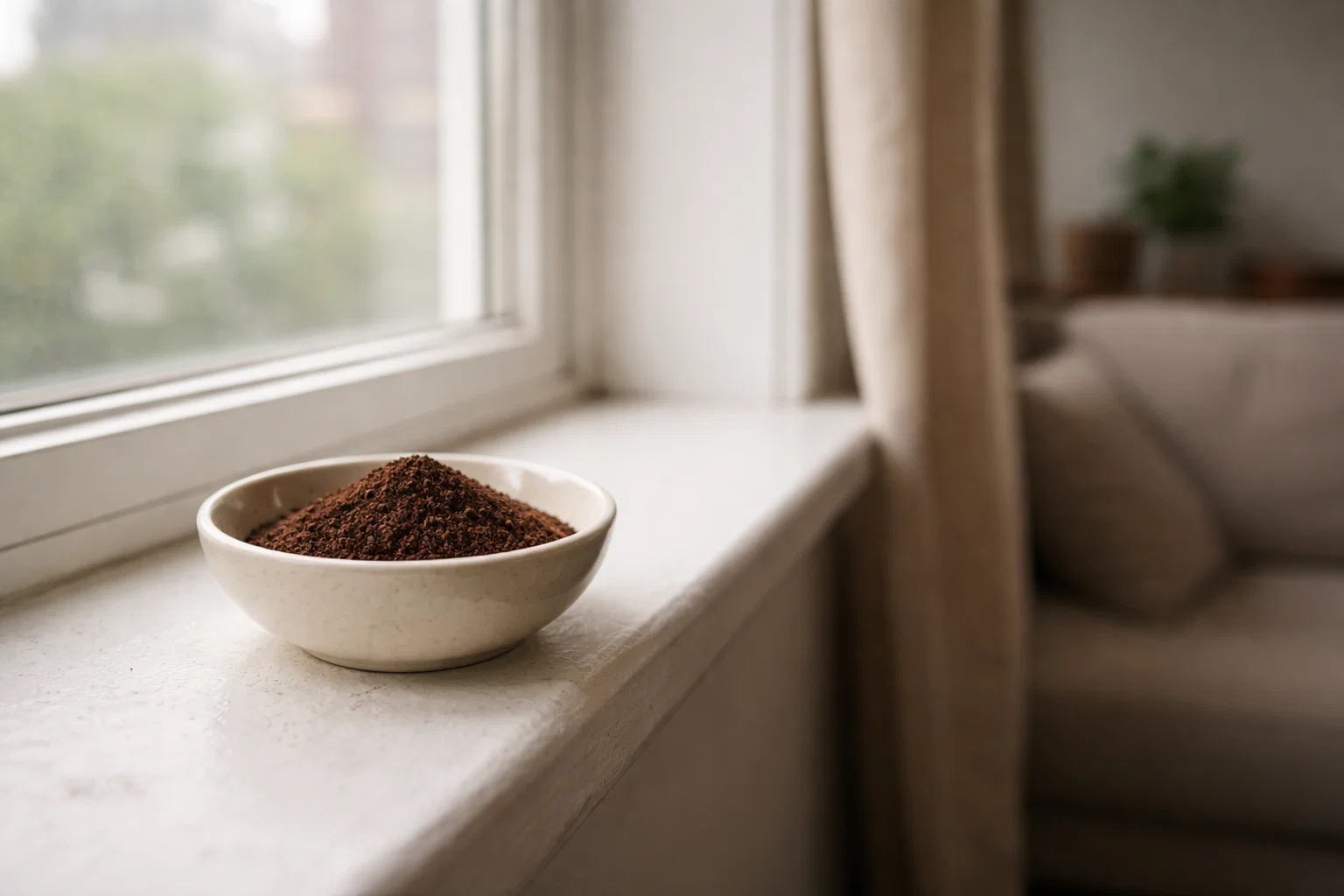 Küçük kaplara konulan kuru kahve telvesi, özellikle kapalı odalarda havadaki kokunun azalmasına katkı sağlar.