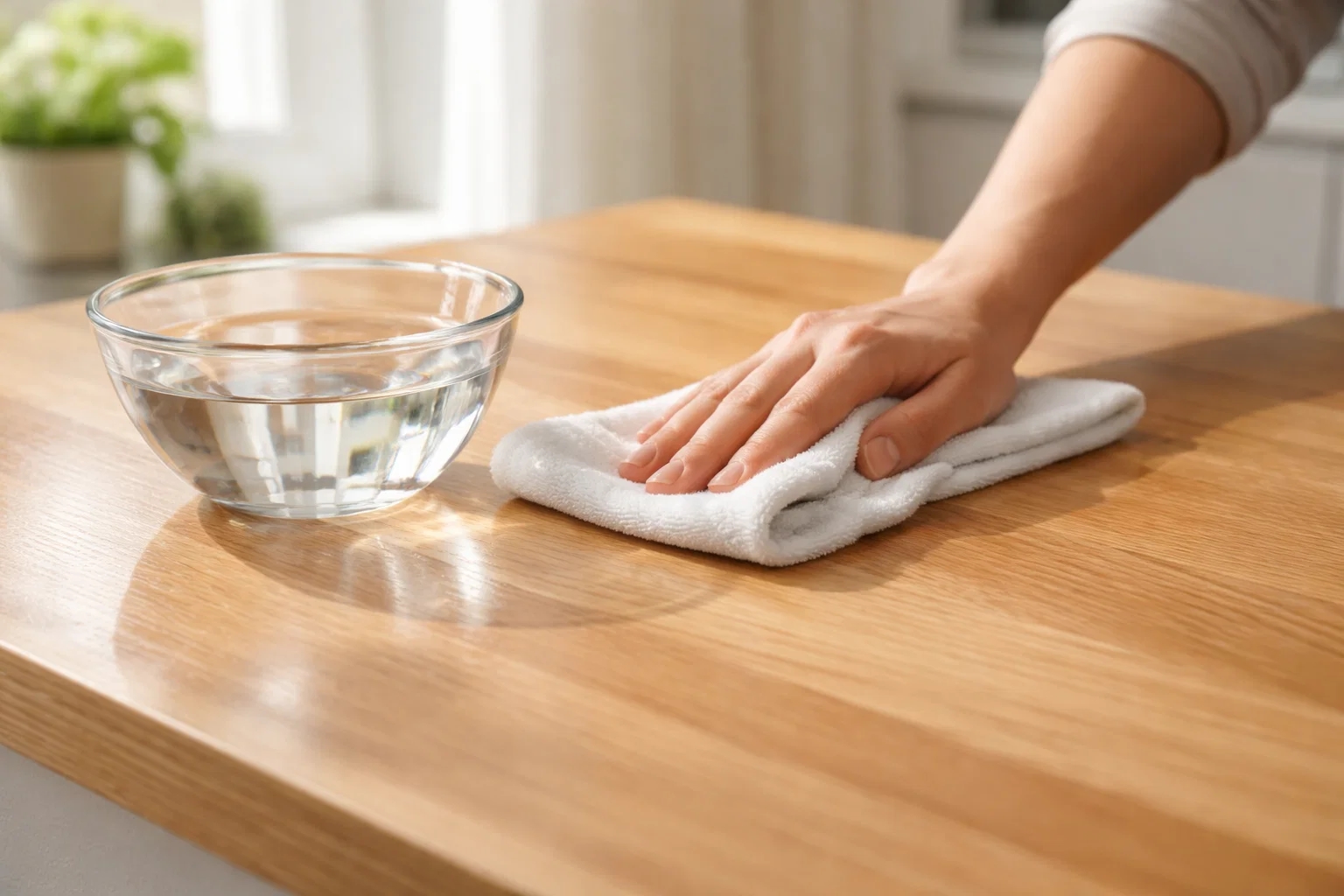 Ilık su ve beyaz sirke karışımıyla masa, dolap içleri ve sert zeminler silinir. Sirke kokusu kısa sürede kaybolur, sigara dumanı kalıntılarını nötralize eder.