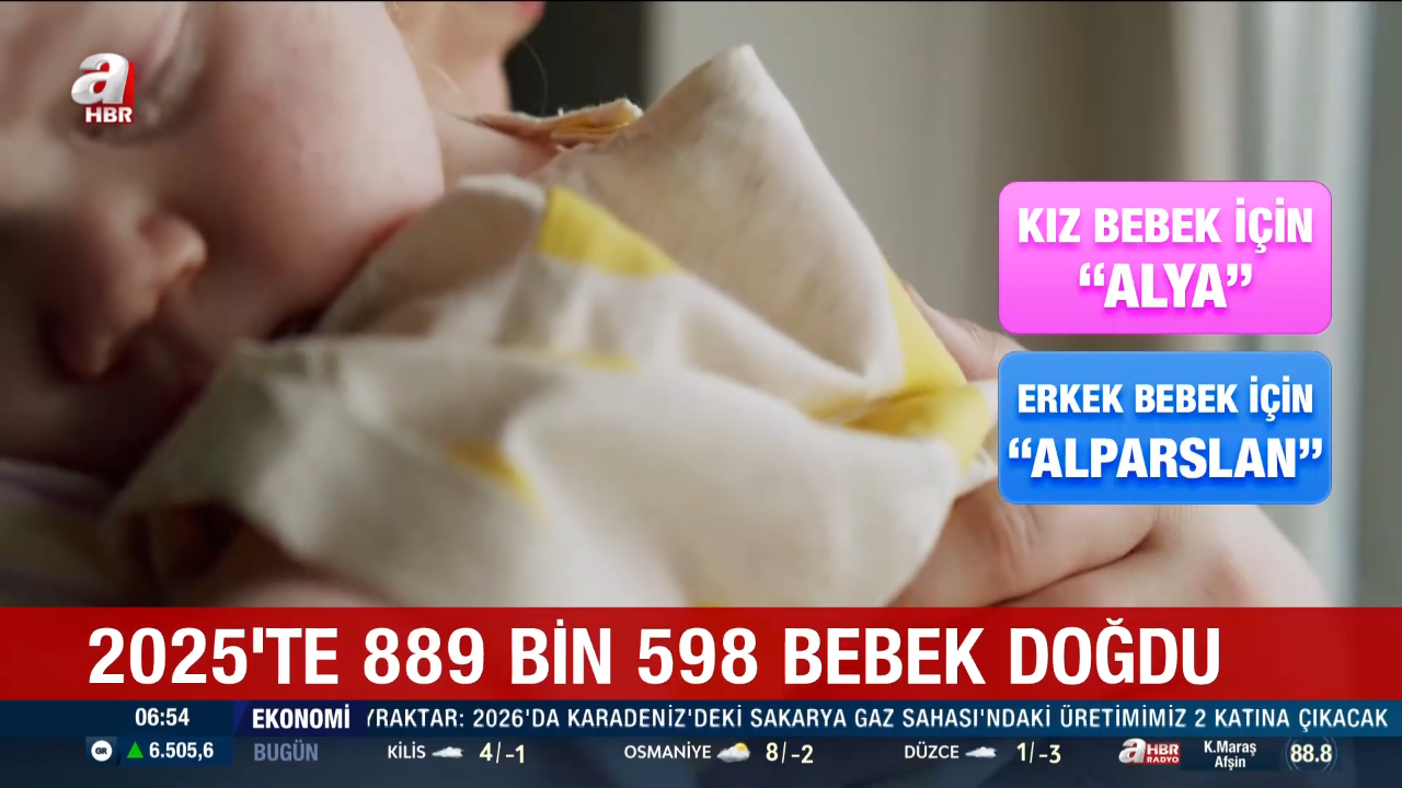 Türkiye'de 2025 yılında 889 bin 598 bebek dünyaya geldi. İçişleri Bakanlığı verilerine göre bebeklere en çok verilen isimler de açıklandı. Erkek bebeklerde zirve değişmedi; kızlarda Alya, erkeklerde ise Alparslan adı sıklıkla tercih edildi.