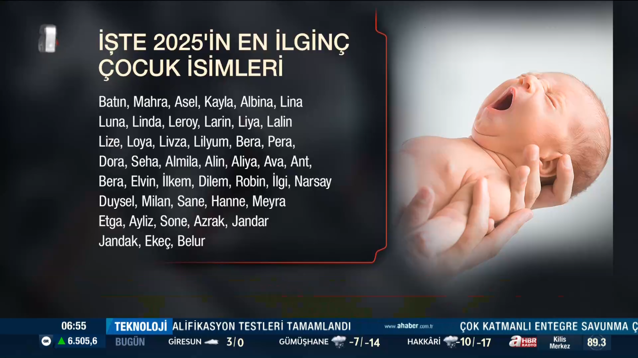 İsim tercihlerinde erkek bebeklerde Alparslan zirvedeki yerini korurken, kız bebeklerde 2024'ün lideri Defne'nin yerini Alya aldı.
