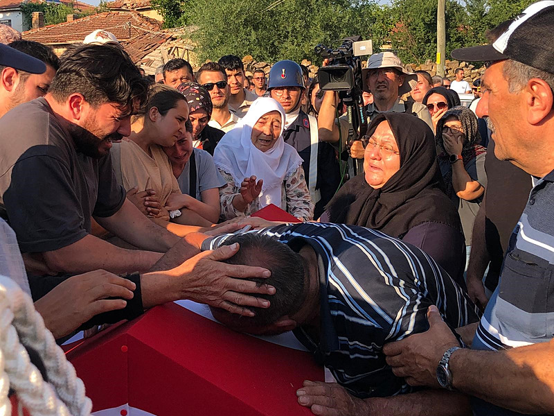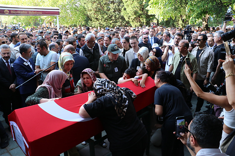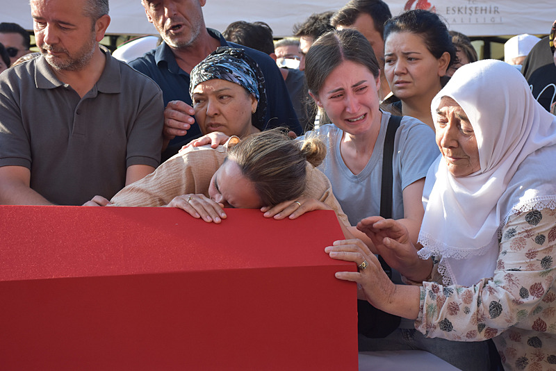 Türkiye, Eskişehir'deki yangın faciasında hayatını kaybeden 10 şehidine ağlıyor. Yangında şehit olan kahramanların arasında yer alan Eyüp Dereli'nin cenaze töreninde sevenlerinin ve oğlunun feryadı yürekleri dağladı. Babasının tabutuna sıkı sarılan acılı evlat, "Baba, ben sensiz ne yapacağım" ifadeleri yürek burktu. Öte yandan yangın şehidi Tolunay Kocaman da gözyaşları içinde son yolculuğuna uğurlandı. Şehidin 1 hafta önce evlendiği eşi Burcu Kocaman, ayakta durmakta güçlük çekti. İşte kahreden o anlar...