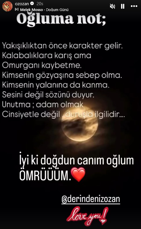 Ünlü oyuncunun asıl dikkat çeken paylaşımı ise hikaye bölümünde oğluna düştüğü "karakter" temalı not oldu. Sosyal medyada elden ele gezen o duygusal mektupta Ozan, oğluna şu nasihatlerde bulundu: