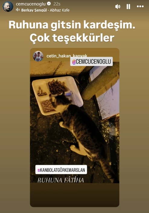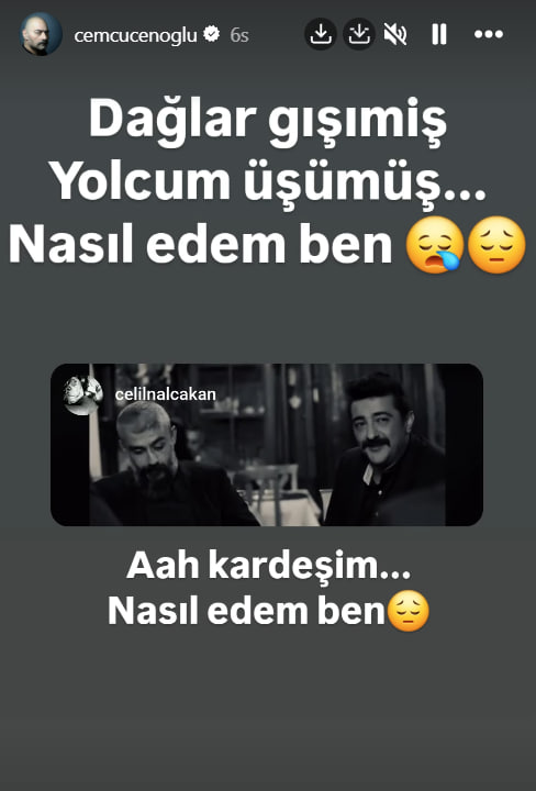 Dizide "Bir Ay Doğar İlk Akşamdan Geceden" türküsünü söylediği sahneyi paylaşan Nalçakan, "Uykusuz mu kaldın dünkü geceden? Ah gardaşım" sözleriyle arkadaşına veda etti.