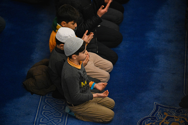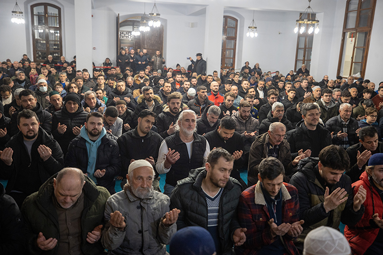Kılınan namazın ardından dua edildi, ilahiler söylendi.