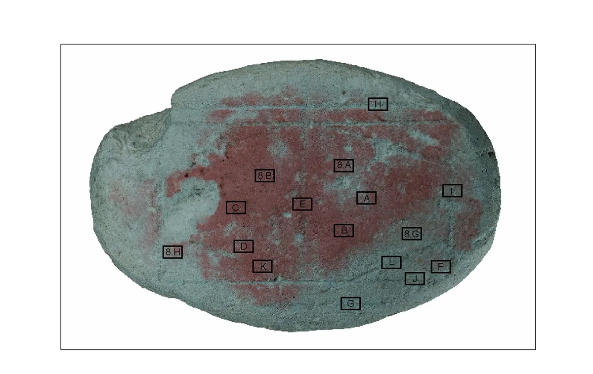 Uzun süre mimari parça ya da kaldırım taşı sanılan blok, üzerindeki geometrik desenler ve aşınmalarla dikkat çekti. Dr. Walter Crist'e göre izler bilinçli kullanımı gösteriyor. Aşınmalar, oyun taşlarının kaydırılmasıyla oluşmuş olabilir. Bu kadar net kanıt antik dönemde çok nadir görülür.