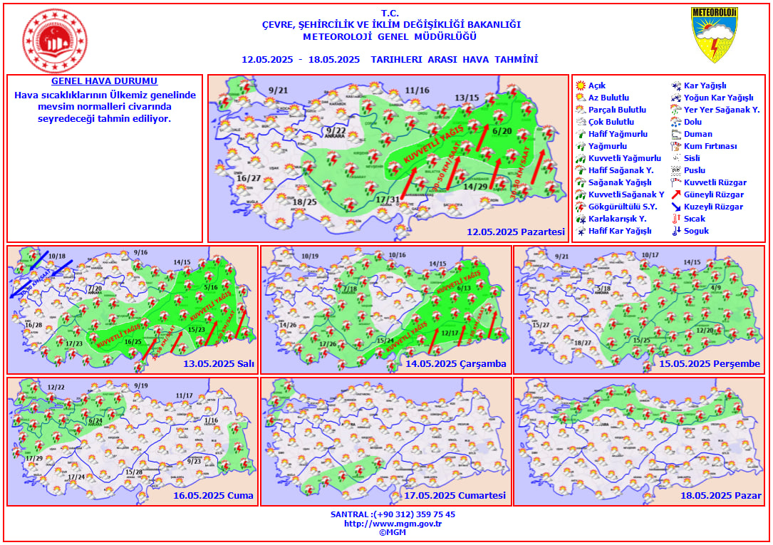 Türkiye yeni haftaya yağışlı ve serin bir havayla başlıyor. Meteoroloji Genel Müdürlüğü'nün son değerlendirmelerine göre kuzeyden gelen serin hava dalgası sıcaklıkları 6 ila 7 derece birden düşürecek. Özellikle Karadeniz Bölgesi için sel uyarısı yapılırken ülkenin büyük bölümünde sağanak ve fırtınanın etkili olması bekleniyor.