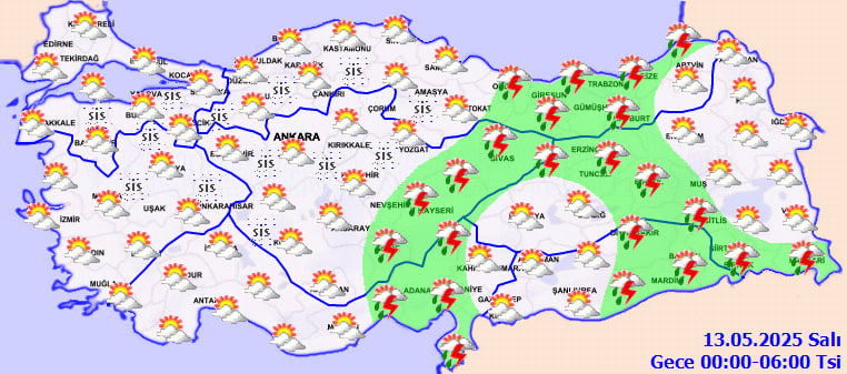 Uyarı kapsamındaki iller arasında Kayseri, Sivas, Yozgat'ın güney ve doğu kesimleri, Tokat, Gümüşhane, Erzincan, Tunceli, Ordu, Giresun ve Trabzon'un iç bölgeleri yer alıyor.