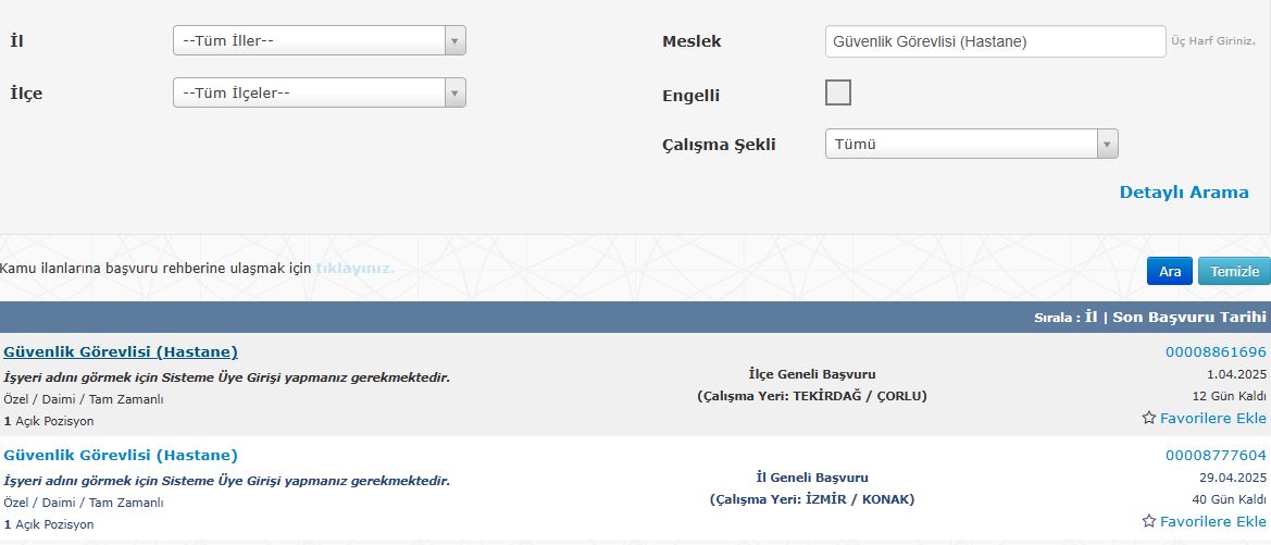 Tekirdağ ve İzmir bölgelerinde hastaneye güvenlik görevlisi alımları yapılacak. Tekirdağ Çorlu bölgesinde yapılacak güvenlik görevlisi alımının son başvuru tarihi 1 Nisan 2025 olarak belirtiliyor. İzmir bölgesinde ise başvurular 29 Nisan 2025 tarihine kadar devam edecek.