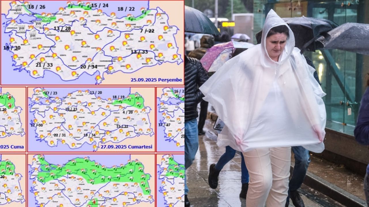 Türkiye kışa hazırlanıyor! İstanbul'da yaz havası sona eriyor, sıcaklıklar birden düşüyor. Meteoroloji sağanak yağış beklenen illeri sıraladı. Kuzeyde yağmur etkili olurken, güneyde ise güneşli hava hakim olacak. Peki hafta sonu planları olanlar için hava nasıl olacak? Sis ve pus uyarı yapıldı. İşte bölge bölge hava durumu raporu…