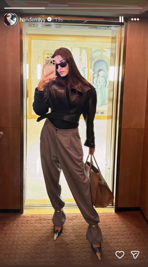 Hande Erçel, ayna karşısında verdiği son pozunu sosyal medya hesabından paylaştı. 32 yaşındaki oyuncunun minimal ancak iddialı kombini ve sıra dışı tasarıma sahip ayakkabıları kısa sürede binlerce beğeni ve yorum aldı.