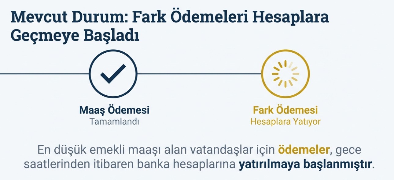 Milyonlarca emeklinin beklediği maaş farkı ödemeleri hesaplara yatırıldı. A Haber canlı yayınına katılan Takvim Gazetesi Genel Yayın Yönetmeni Faruk Erdem'in aktardığı bilgilere göre, en düşük emekli maaşının 20 bin liraya yükseltilmesi sonrası oluşan ve 3 bin 119 liraya kadar ulaşan fark tutarları, özellikle 20 bin liranın altında maaş alan emeklilerin hesaplarına gece saatlerinden itibaren aktarılmaya başlandı.