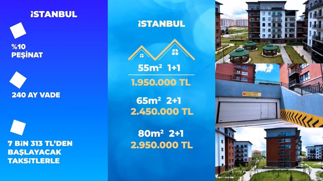 İstanbul'da 100 bin konutun fiyatı 1 milyon 950 bin liradan, aylık taksitler ise 7 bin 313 liradan başlayacak.