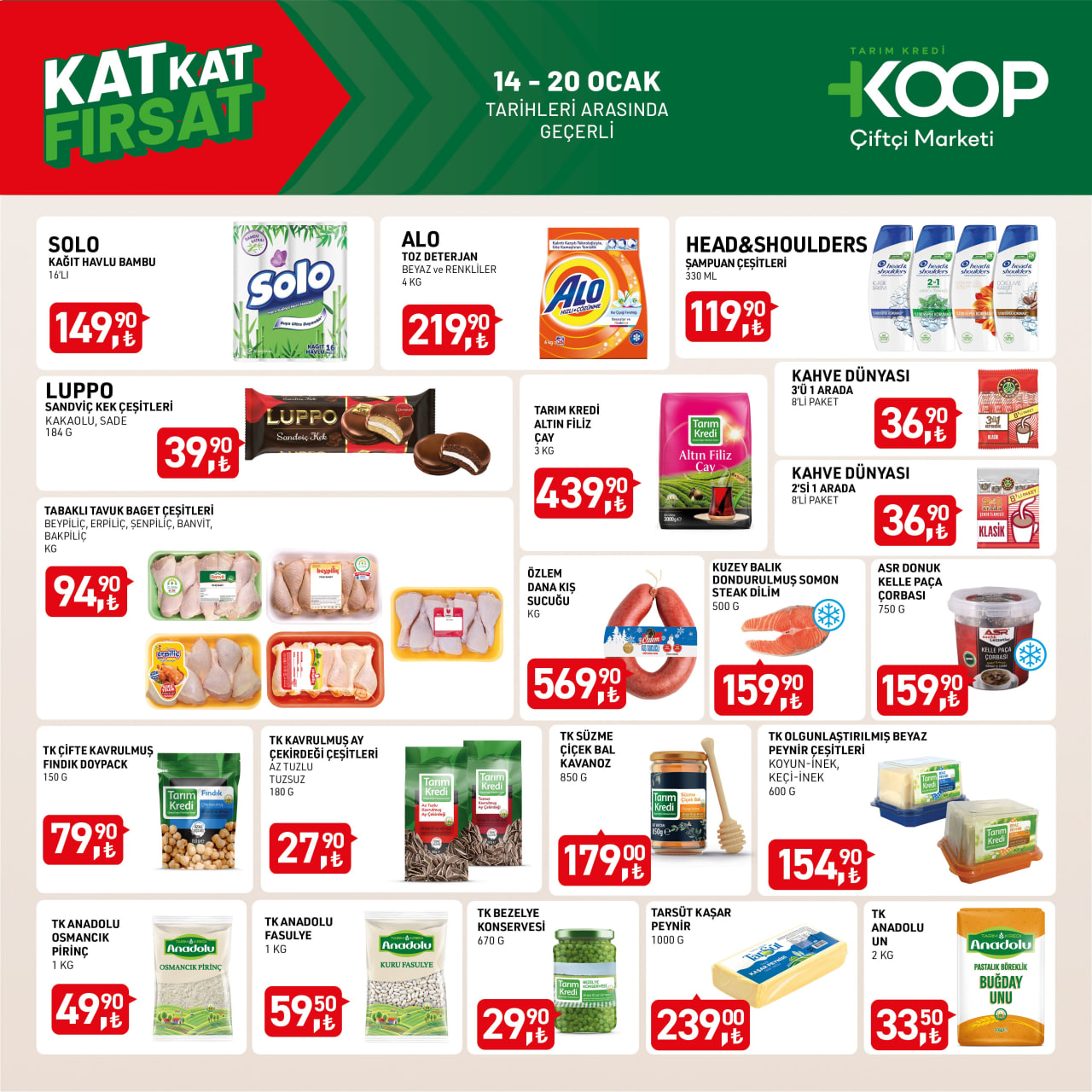 Tarım Kredi Kooperatifi, 15 Ocak 2025 itibarıyla yeni aktüel katalog indirimlerini duyurdu. Bu haftaki fırsatlar 20 Ocak 2025 Pazartesi gününe kadar geçerli olacak. Katalogda çay, sucuk, tavuk, bal, pirinç gibi temel gıda ürünlerinin yanı sıra birçok farklı ürün yer alıyor. İşte 15 - 20 Ocak 2025 tarihleri arasında geçerli olan Tarım Kredi market aktüel fiyat listesi...