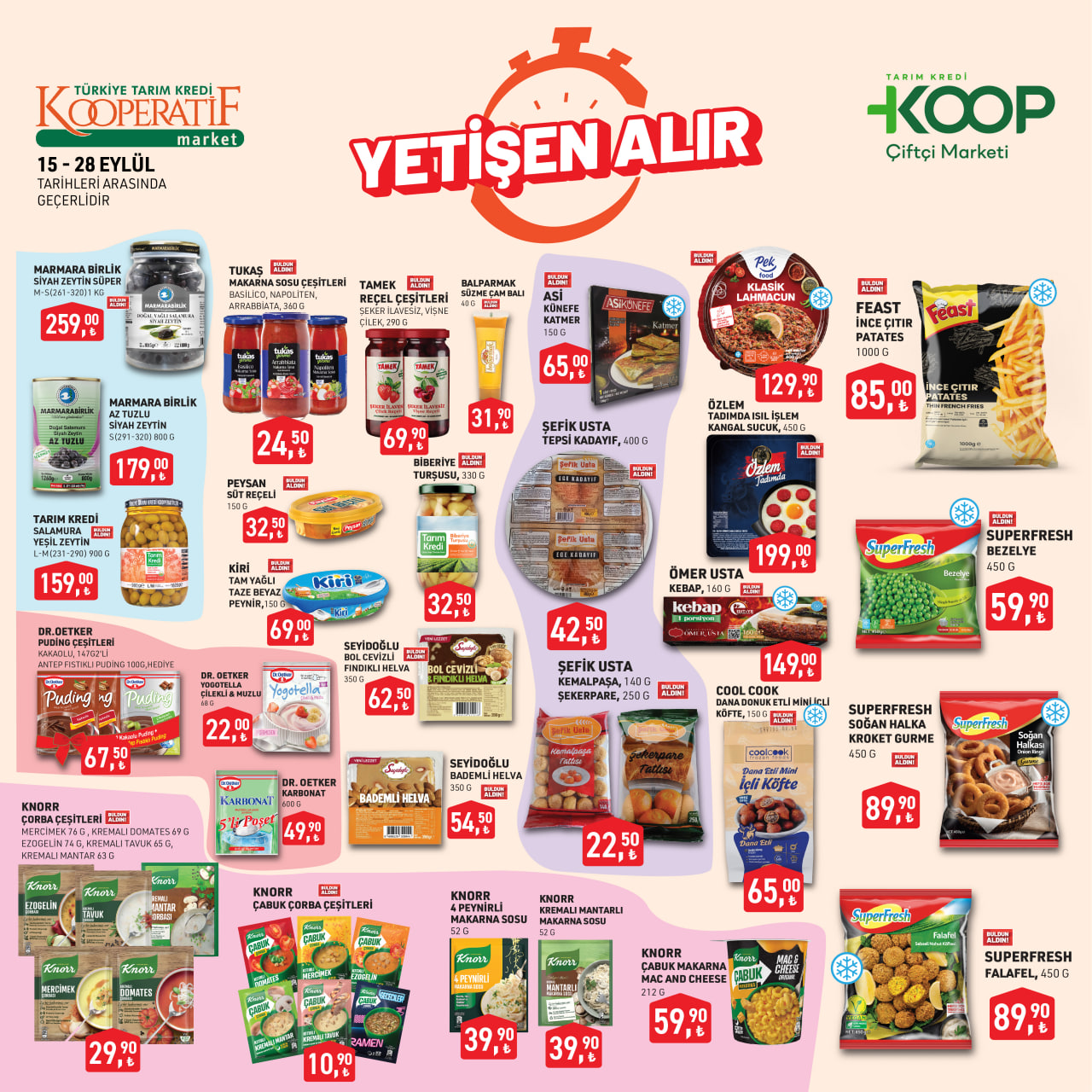 Tarım Kredi Kooperatif Market, 16-22 Eylül tarihleri arasında geçerli olacak yeni indirimlerini açıkladı. Vatandaşlar, ucuz ve avantajlı alışveriş fırsatlarını yakalamak için marketin güncel kampanyalarını araştırıyor. Bu hafta sucuk, süt, dana köfte, kahvaltılık ürünler, bulaşık makinesi tabletleri, kaşar peyniri ve temel gıda ürünlerinde özel fiyat indirimleri uygulanıyor.