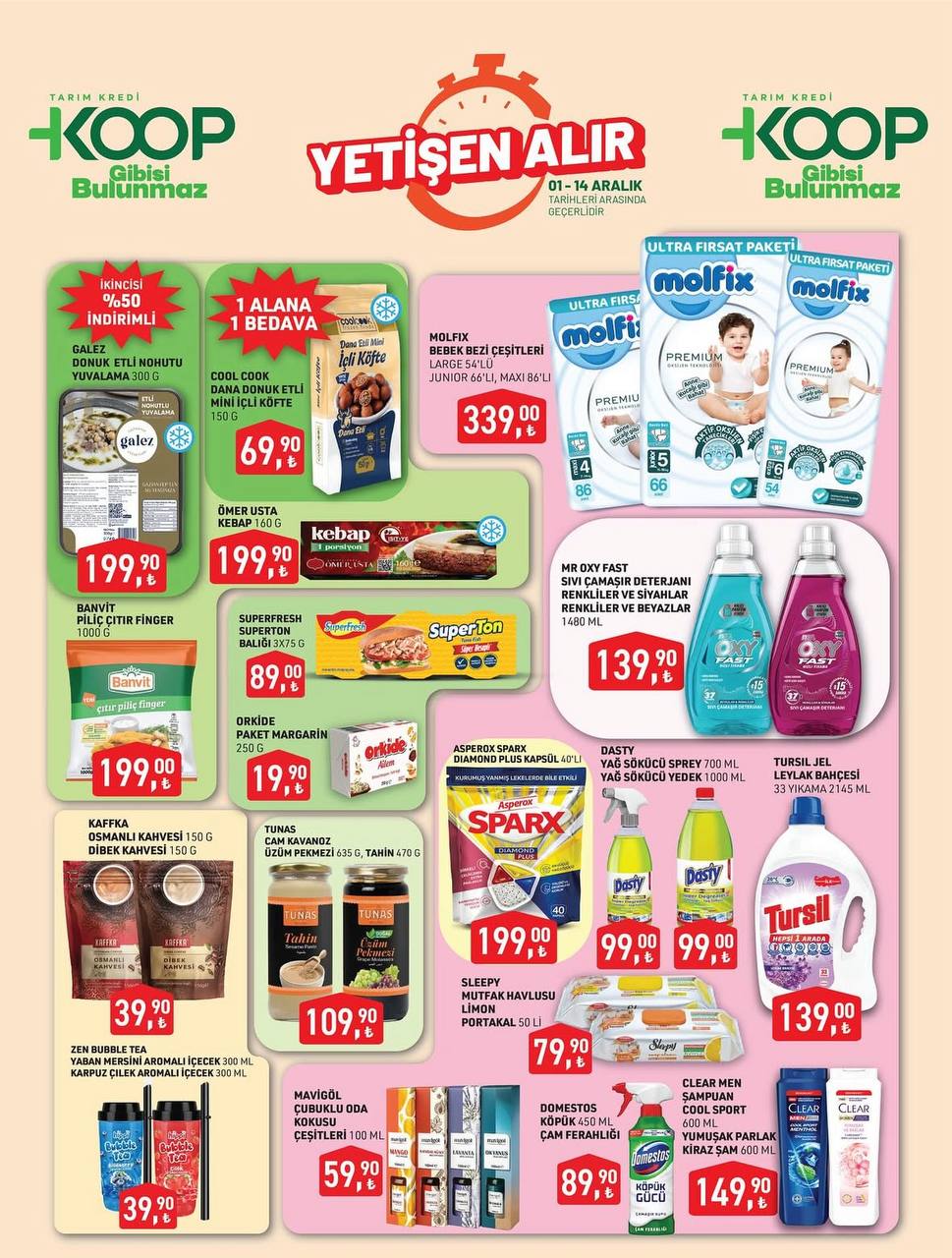 Tarım Kredi Kooperatif Marketleri, Aralık ayının ilk yarısına özel "Yetişen Alır" kampanyasını duyurdu. 14 Aralık'a kadar geçerli indirimlerde temel gıda, temizlik ve kişisel bakım ürünlerinde dikkat çekici fiyatlar öne çıkıyor. İşte 2-14 Aralık kataloğu...