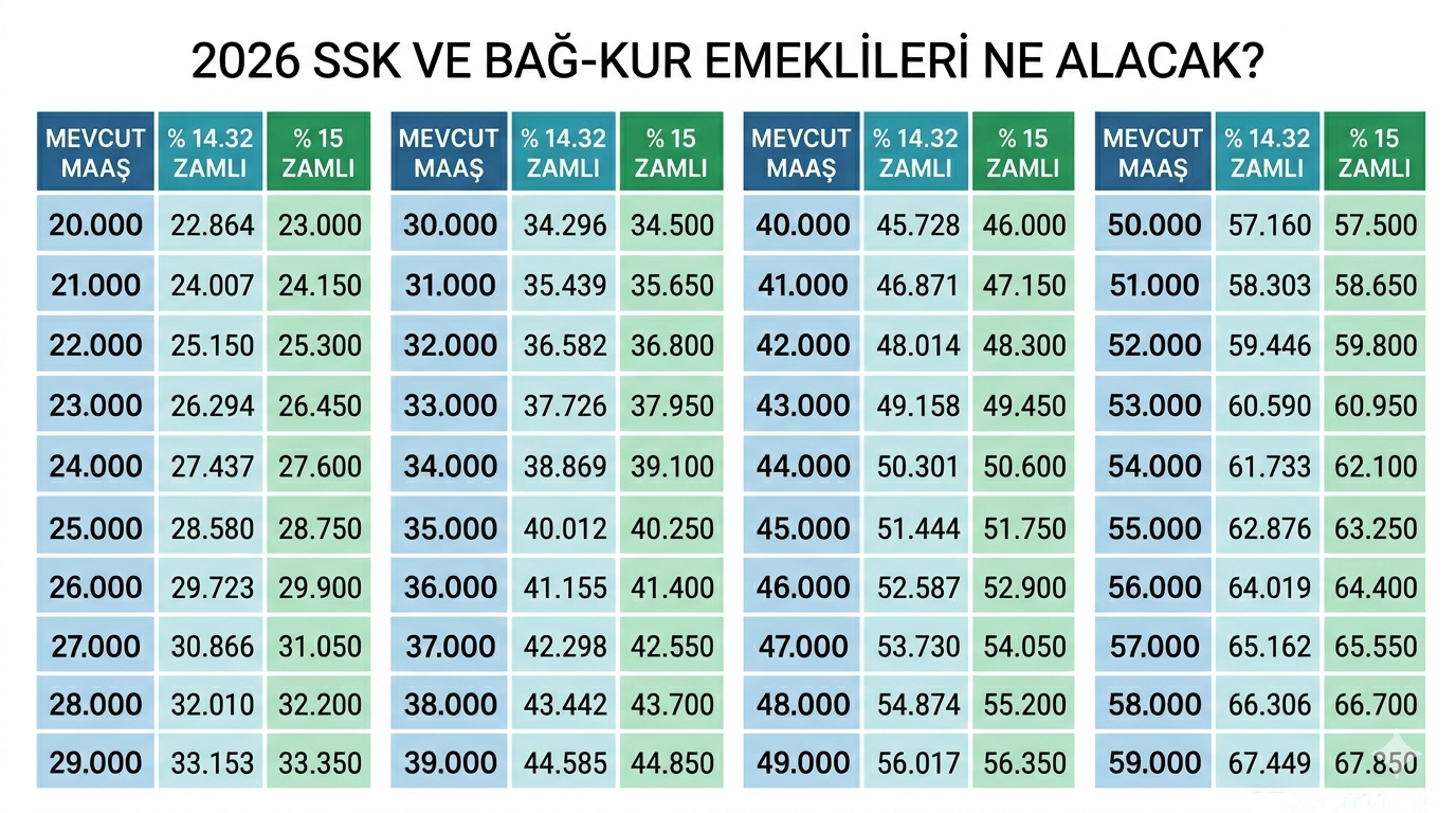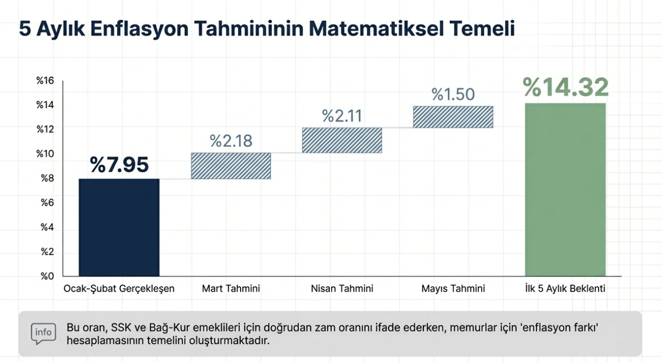 Bu veriler bir araya getirildiğinde, ilk 5 aylık enflasyonun yüzde 14.32'ye ulaşması bekleniyor. Bu oran, SSK ve Bağ-Kur emeklileri için doğrudan zam anlamına geliyor.