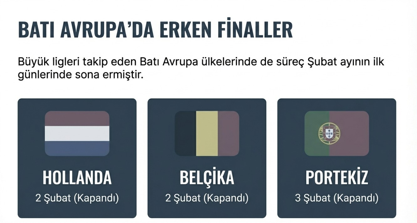 Avrupa'nın önde gelen futbol ülkelerinde ara transfer dönemi genel olarak ocak ayı başında başlarken, çoğu ülkede şubat ayının ilk günlerinde sona erdi.