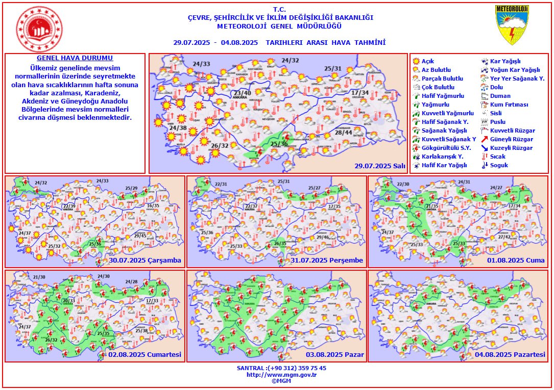 Türkiye genelinde kavurucu sıcaklıklar hüküm sürerken, özellikle İç Anadolu, Ege ve Trakya bölgeleri bu hafta aşırı sıcaklarla mücadele ediyor. İstanbul'da sıcaklıklar 35-36 derecenin üzerine çıkarak vatandaşları zorluyor.