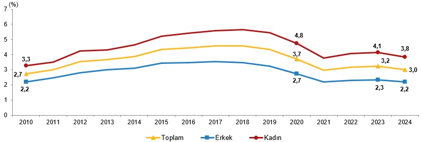Yaşlı nüfusun toplam nüfus içindeki payı da aynı dönemde yükseldi. 2020 yılında yüzde 9,5 olan oran, 2025 yılında yüzde 11,1 seviyesine çıktı. Yaşlı nüfus içinde kadınların oranı erkeklerden daha yüksek oldu. 2025 yılında yaşlıların %55,3'ünü kadınlar, %44,7'sini erkekler oluşturdu.