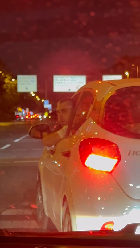 Trafik ışıklarına kadar süren tartışmada, otomobil sürücüsü elindeki biber gazını diğer araçta yolcu koltuğunda oturan kadına sıktı. Olayın ardından sürücü hızla uzaklaşırken, yaşananlar cep telefonu kamerasıyla kaydedildi.