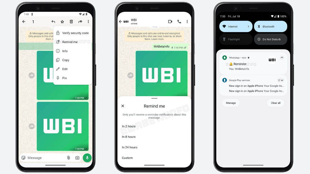Bu özellik sayesinde, bir etkinlik, toplantı, kişisel not veya daha sonra izlenecek bir video gibi içerikler kolaylıkla unutulmaktan kurtarılıyor. Kullanıcı, ilgili mesaj üzerine uzun basarak çıkan menüdeki zil simgesine dokunuyor ve ardından belirli saat aralıklarını ya da özel tarih-saat seçeneğini kullanarak hatırlatma zamanını ayarlıyor. Mesajın yanında küçük bir zil simgesi beliriyor ve işlem tamamlanmış oluyor.