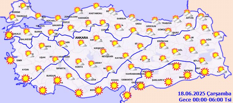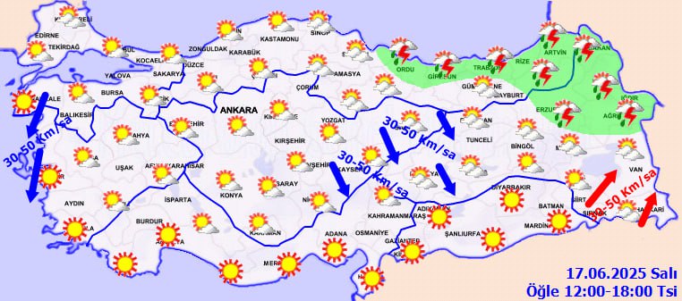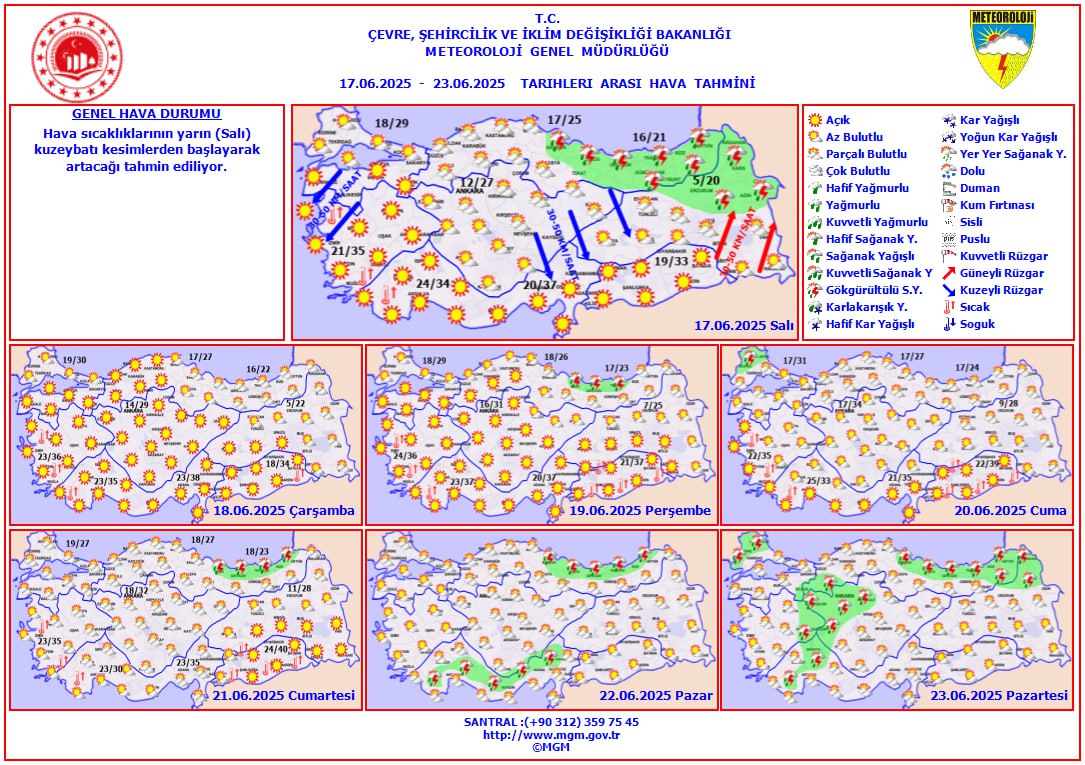 Meteoroloji Genel Müdürlüğü'nün son tahminlerine göre, Türkiye'nin kuzey ve doğu kesimlerinde hava parçalı ve yer yer çok bulutlu olacak. Doğu Karadeniz ile Ordu çevresi ve Doğu Anadolu'nun kuzeydoğusunda yerel sağanak ve gök gürültülü sağanak yağışlar bekleniyor. Yağışların özellikle öğle saatlerinden sonra etkili olacağı tahmin ediliyor.