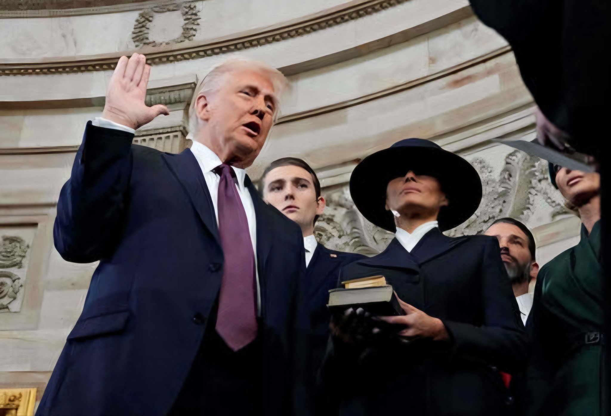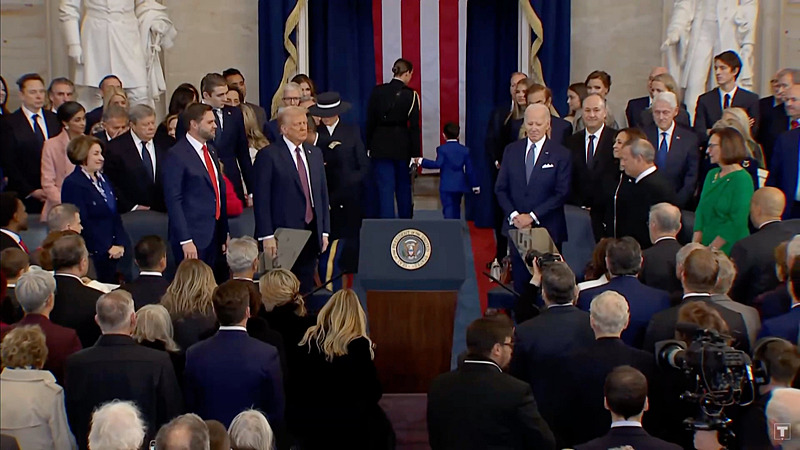 4 yıl aranın ardından göreve dönen Trump'ın yemin töreninde elini İncil'e basmadığı anlar dikkat çekti.