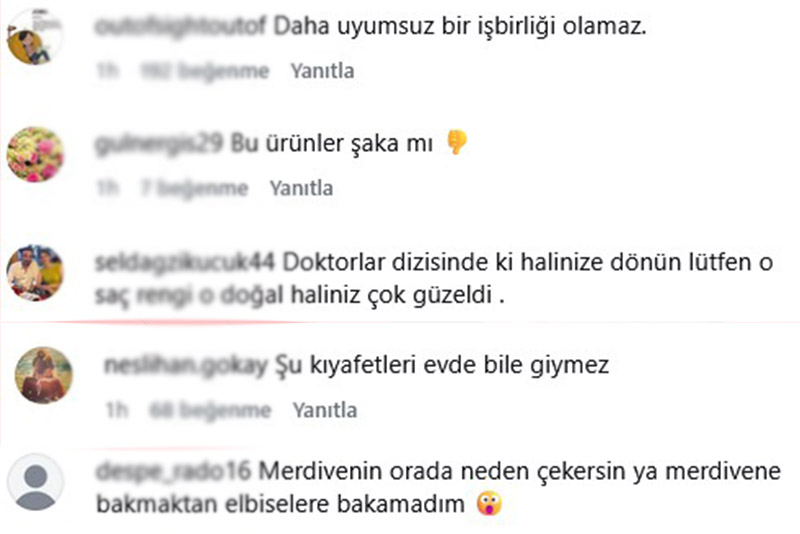 Paylaşımın altına gelen yorumlarda yalnızca iş birliği yapılan marka değil, Ergene'nin tercih ettiği kıyafetler, evinin dekorasyonu ve hatta merdivenlerinin boyasına kadar pek çok detay eleştiri konusu oldu.
