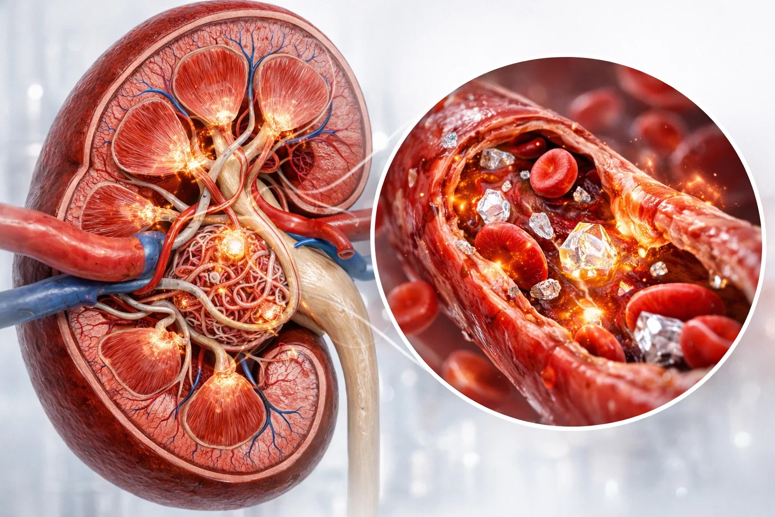 Böbrekler, kanı süzen milyonlarca küçük filtre ünitesi olan nefronlardan oluşur. Bu filtrelerin çalışabilmesi için çok ince ve hassas damar ağı gerekir. Kan basıncı uzun süre yüksek kaldığında bu küçük damarlar üzerinde aşırı yük oluşur. Damar yapısı zamanla kalınlaşır veya sertleşir. Sonuç olarak böbreklerin:
