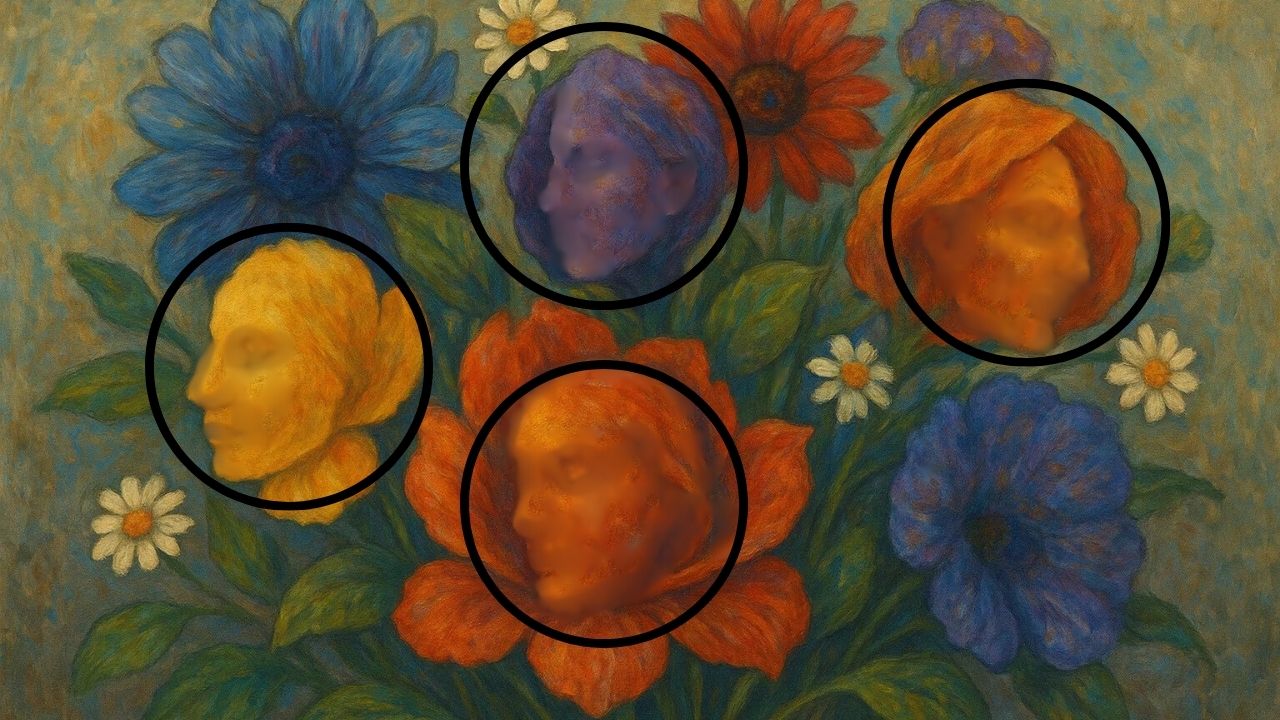 Bu görseldeki meydan okuma oldukça net: Bu çiçek demetinde gizli yüzler bulunuyor. 10 saniye içinde çiçeklerin arasında gizlenen4 insan yüzünü bulmanız bekleniyor.