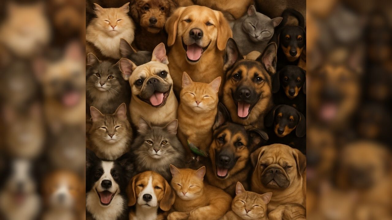 Hazırsanız başlayın! Görseli dikkatlice inceleyin. Görünüşte sevimli kediler ve köpeklerden oluşan bir tablo sizi karşılıyor.