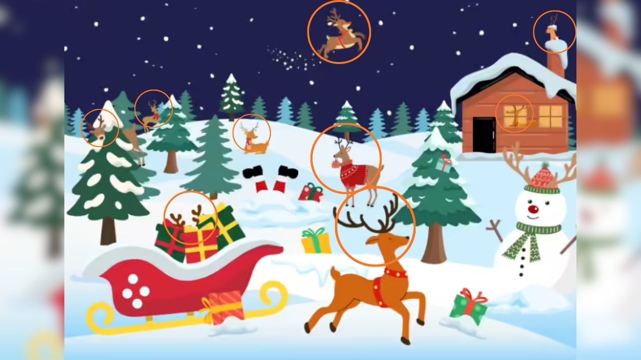 İlk bakışta masum görünen bu zeka oyunu, ayrıntılara hakim olmayanları kısa sürede eliyor. Kış manzarasına ustalıkla gizlenen ren geyiklerini sadece gerçekten dikkatli olanlar fark edebiliyor. Doğru sayıyı 9 saniyede bulabilir misin?