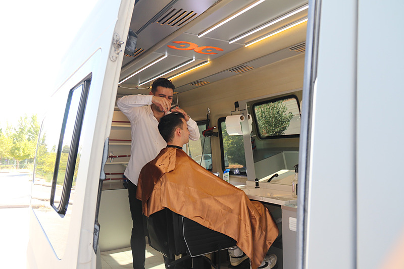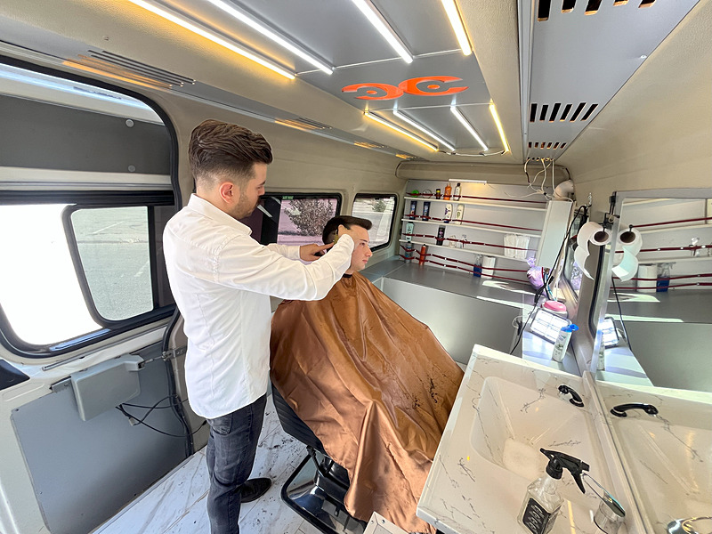 Eskişehir'de yaşayan 28 yaşındaki erkek kuaförü Caner Yıldırım yaptığı hizmet ile görenleri şaşkına çevirdi. Yıldırım, dükkan olarak kullandığı minibüse 1 milyon 250 bin TL harcadı.