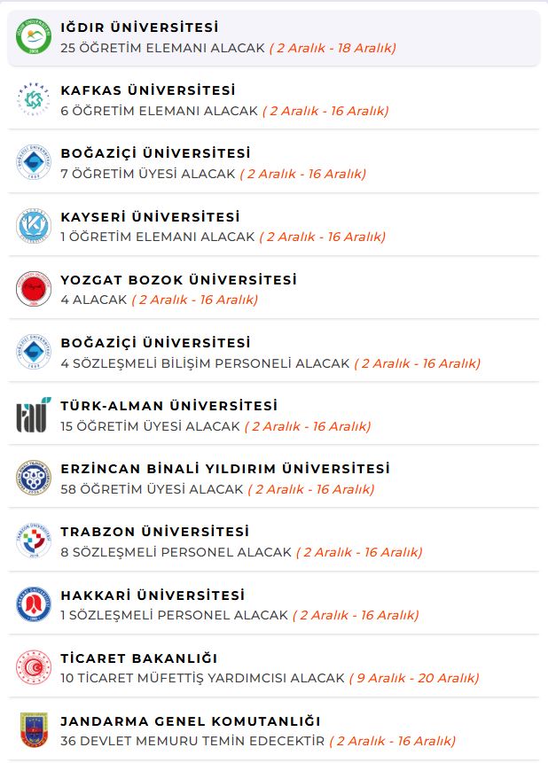 Aralık ayı bakanlık, üniversite ve kamu kurumu ilanları: 11.041 sözleşmeli personel alımı yapılacak!