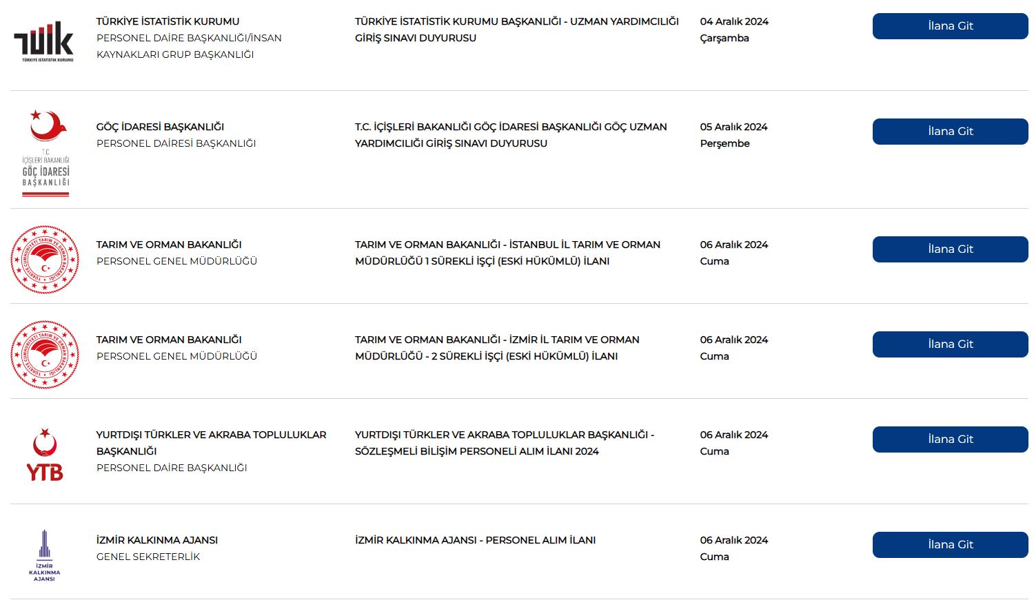 Kamu ilanlarına göz atmak ve detayları incelemek için aşağıdaki adreslere tıklayabilirsiniz: