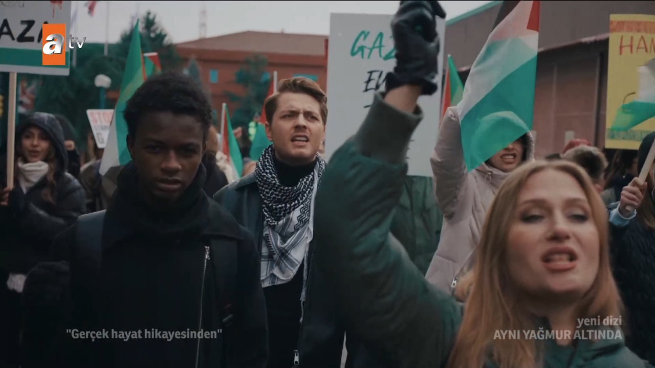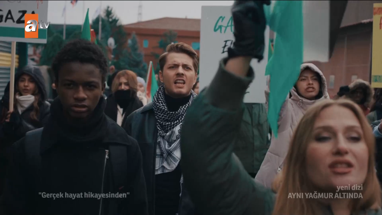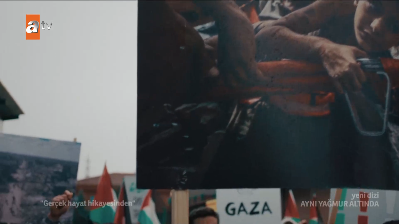 7 Ekim 2023'ten bu yana İsrail'in Gazze'ye yönelik başlattığı saldırılar, on binlerce insanın hayatını kaybetmesine, milyonlarca sivilin ise yerinden edilmesine neden oldu. Dünyanın gözleri önünde yaşanan bu insanlık dramı sürerken, ATV ekranlarında izleyiciyle buluşan yeni dizi Aynı Yağmur Altında, yayınlanan ilk bölümüyle dikkat çekici bir mesaj verdi. Dizi, "Gazze'ye Özgürlük" vurgusuyla ekrana gelerek yalnızca bir hikâye anlatmakla kalmadı, yaşanan trajediye de güçlü bir şekilde dikkat çekti.