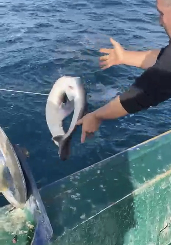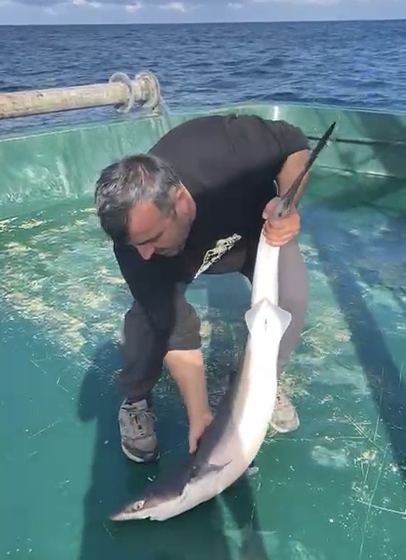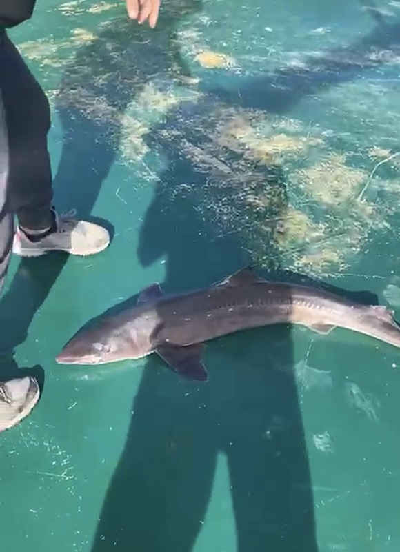 Bartın'ın Kurucaşile ilçesi açıklarında balıkçılar ağlarına bir camgöz türü köpek balığı yakaladı. Balıkçılar, ağlara takılan köpek balığını zarar vermeden yeniden denize bıraktı.