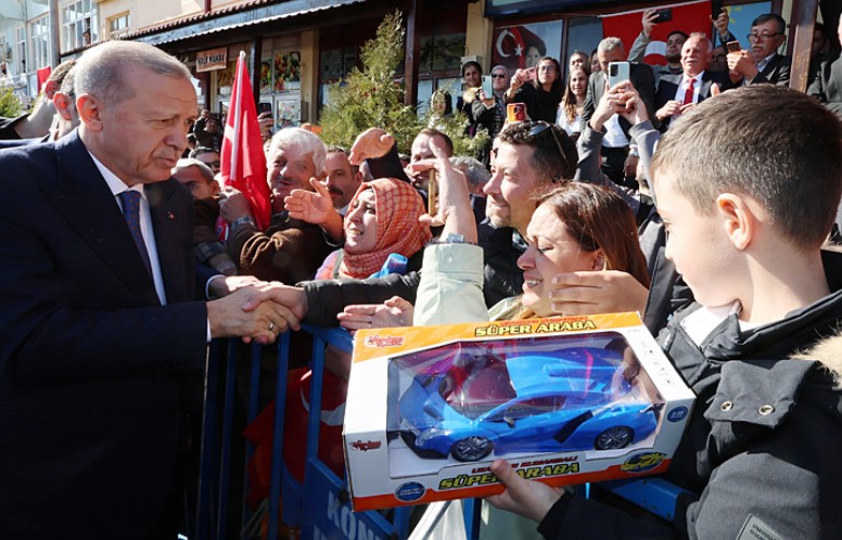 Cami çıkışında Erdoğan, kız çocuklarına oyuncak bebek, erkek çocuklarına oyuncak araba hediye etti. Vatandaşlarla selamlaşıp, sohbet eden Erdoğan, ardından İbradı Belediyesi'ni ziyaret etti.
