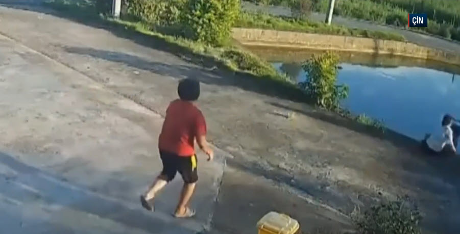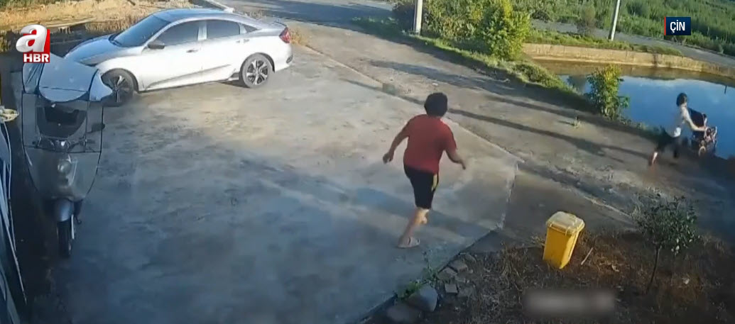 Görüntüler Çin'de kayda geçti. Bebek arabası göle doğru ilerlemeye başladı. Annesi de peşinden koştu. O anlar saniye saniye kameraya yansıdı. Bakın sonra neler oldu...