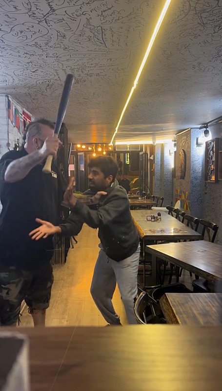Çalışanı havaya kaldırıp yere çarpan Ünlü, daha sonra beyzbol sopasıyla defalarca vurdu.