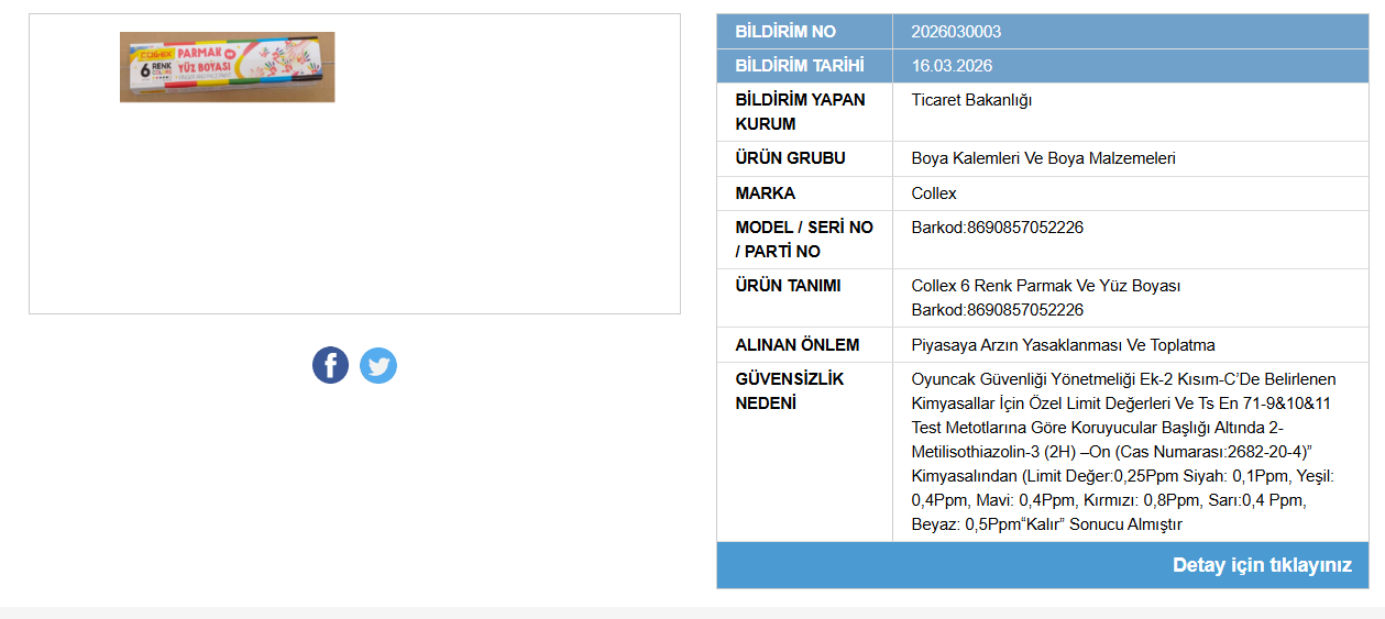 Ticaret Bakanlığı, piyasa gözetimi ve denetimi faaliyetleri kapsamında güvensizliği tespit edilen ürünleri kamuoyuna ilan etmeye devam ediyor. Bakanlığın GÜBİS üzerinden yaptığı son duyuruda, çocuk sağlığını doğrudan tehdit eden bir oyun ve boyama ürünü için acil toplatma kararı aldığı bilgisi yer aldı.