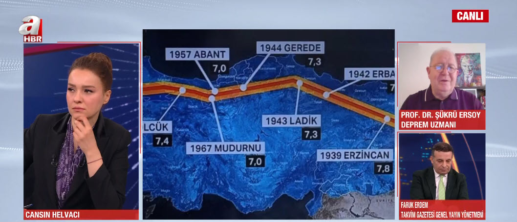 İstanbul'da art arda yaşanan depremler büyük paniğe neden oldu. Deprem Uzmanı Prof. Dr. Şükrü Ersoy, A Haber canlı yayınında Ajans Bugün programında A Haber Spikeri Cansın Helvacı'nın sorularını yanıtladı.