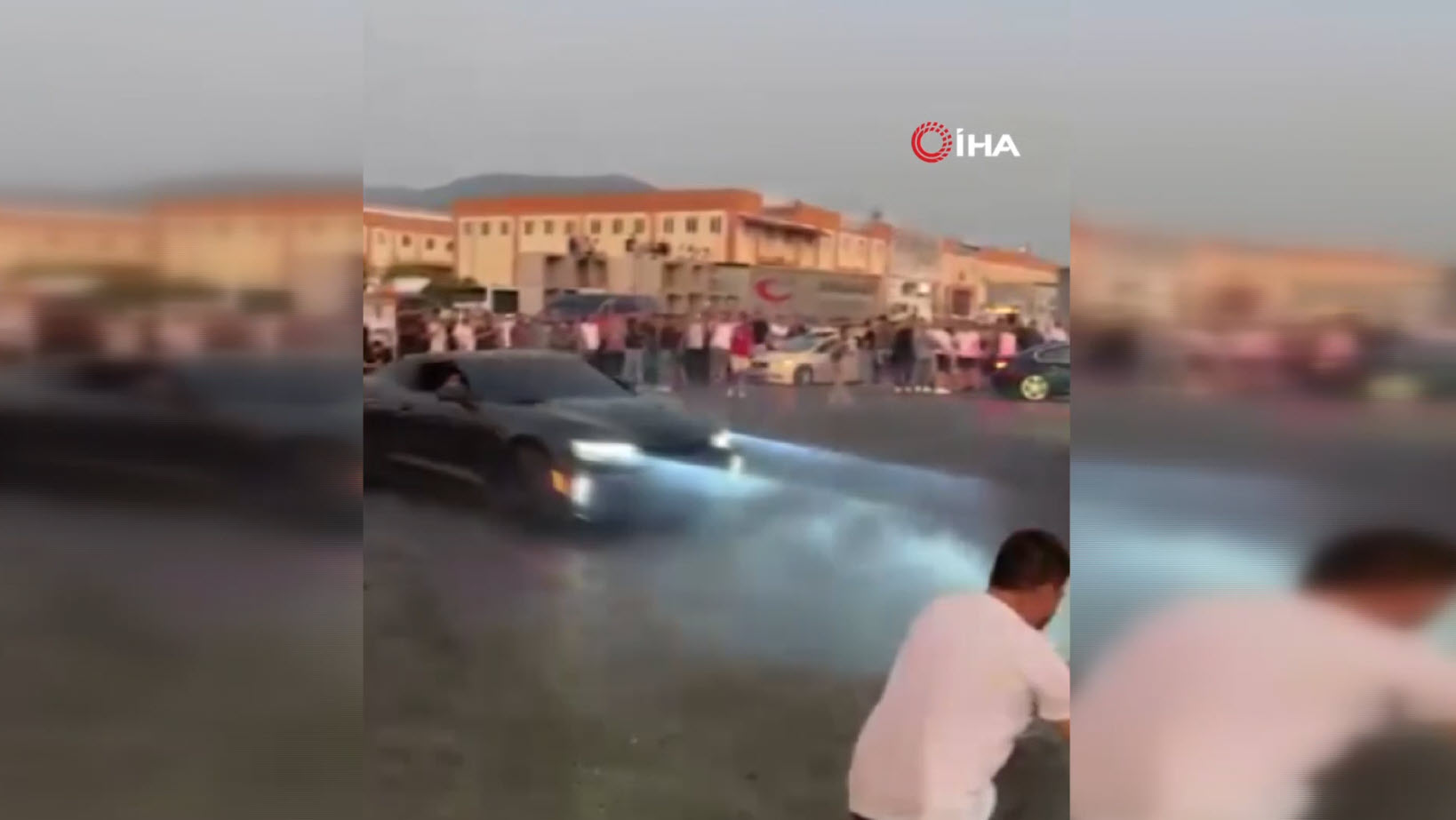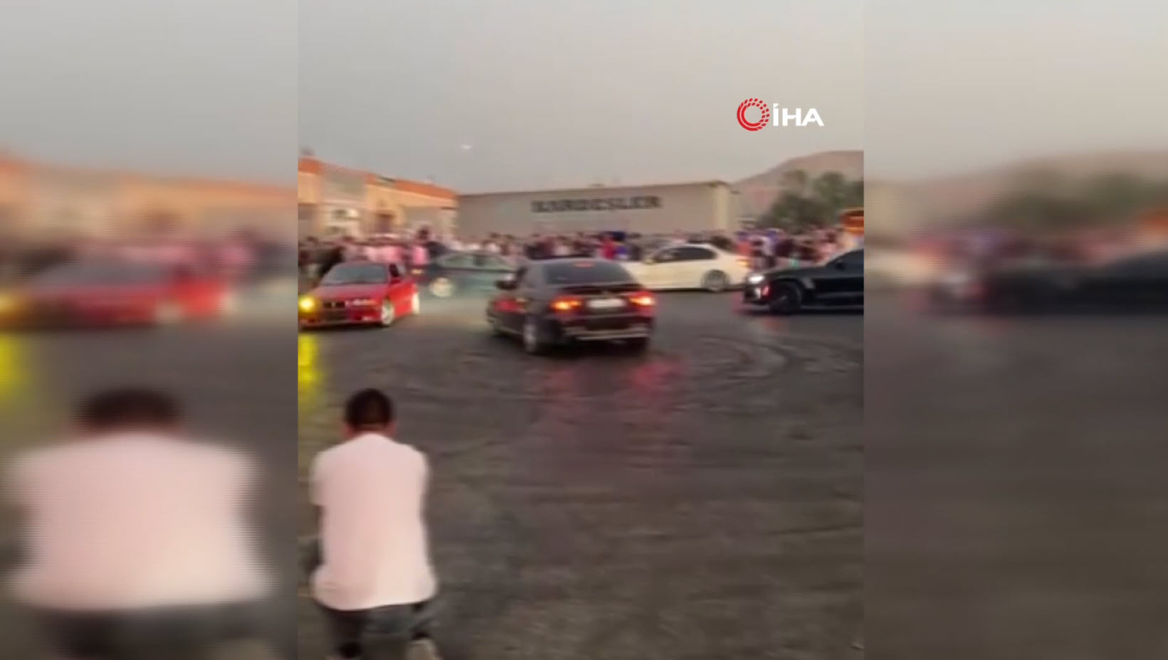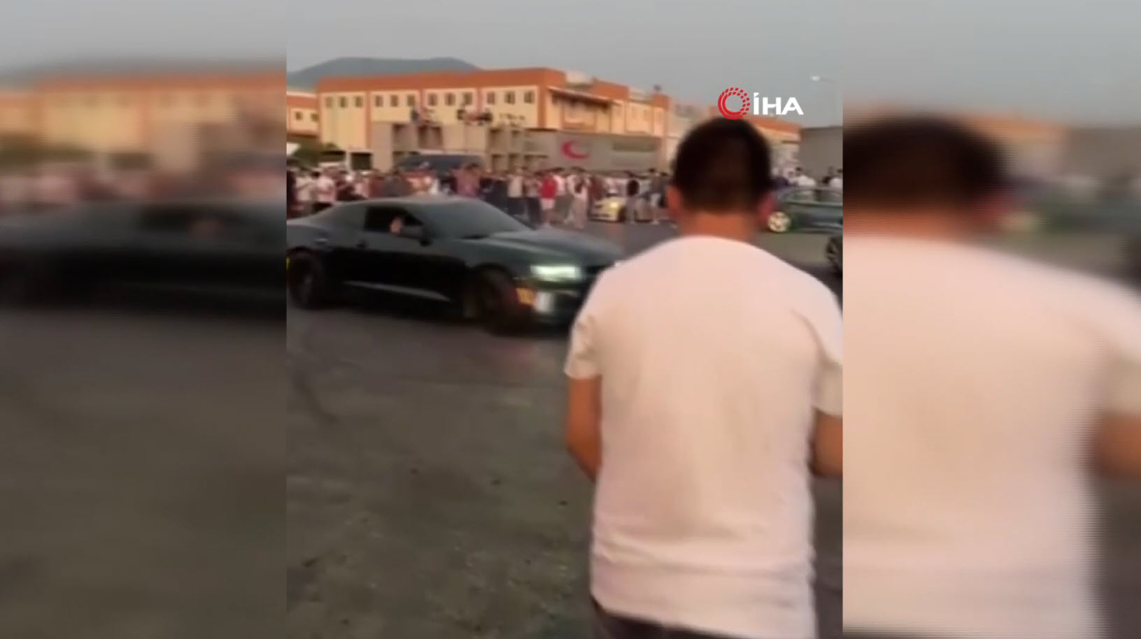 Araçların tehlikeli manevralarını izleyen kalabalık arasında bulunan bir kişi cep telefonuyla gösteriyi kaydetmek istedi.