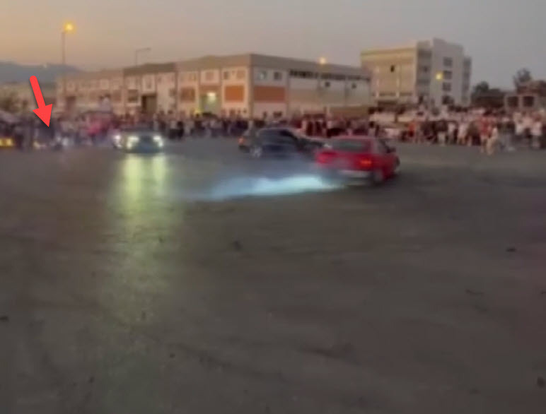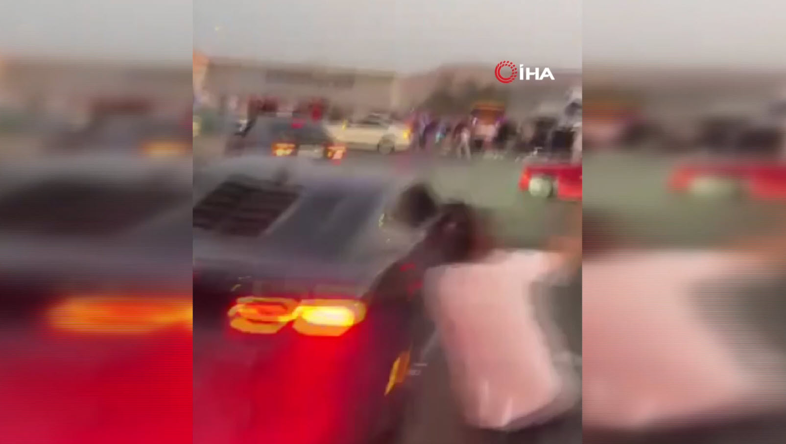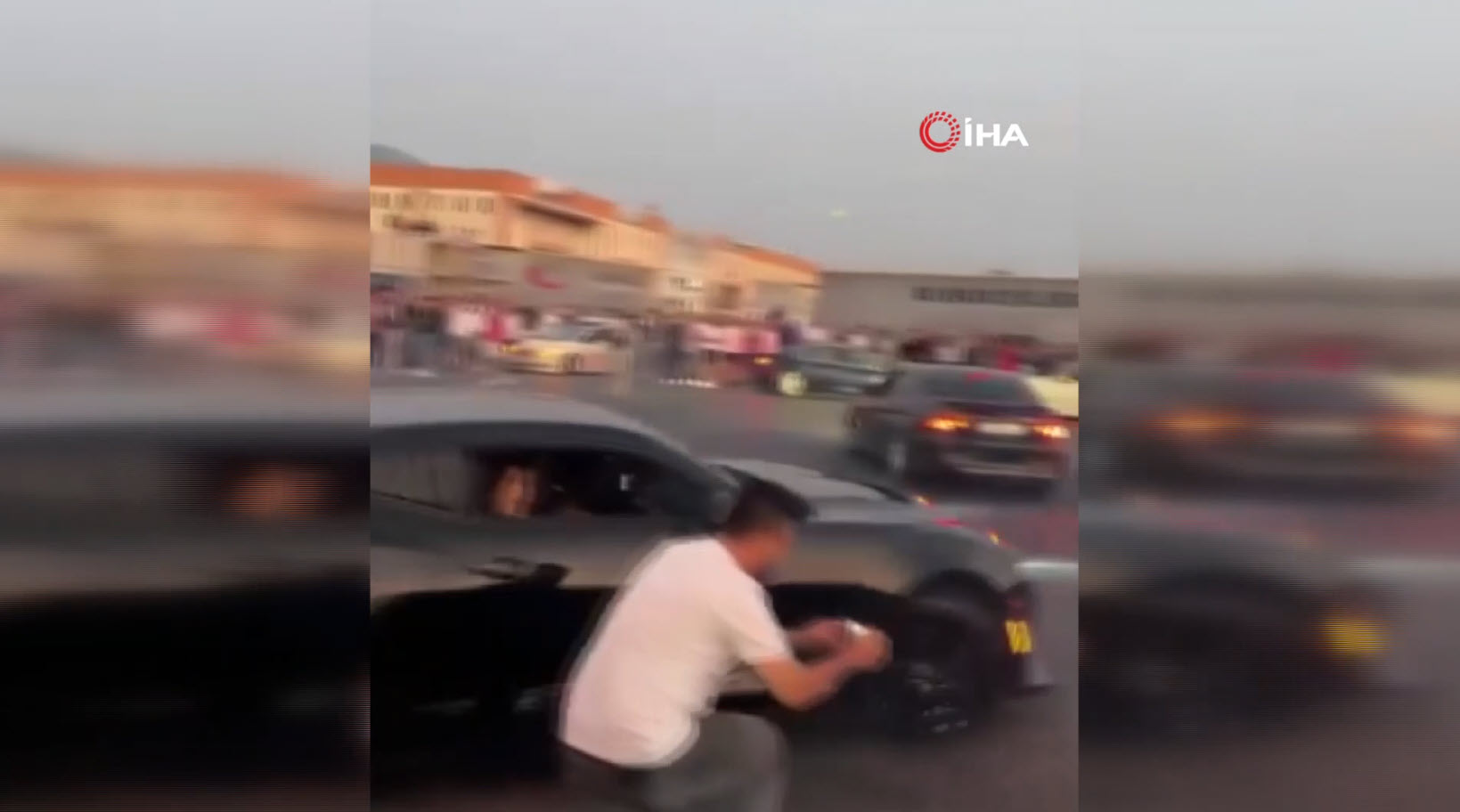 Araçların tehlikeli manevralarını izleyen kalabalık arasında bulunan bir kişi cep telefonuyla gösteriyi kaydetmek istedi.